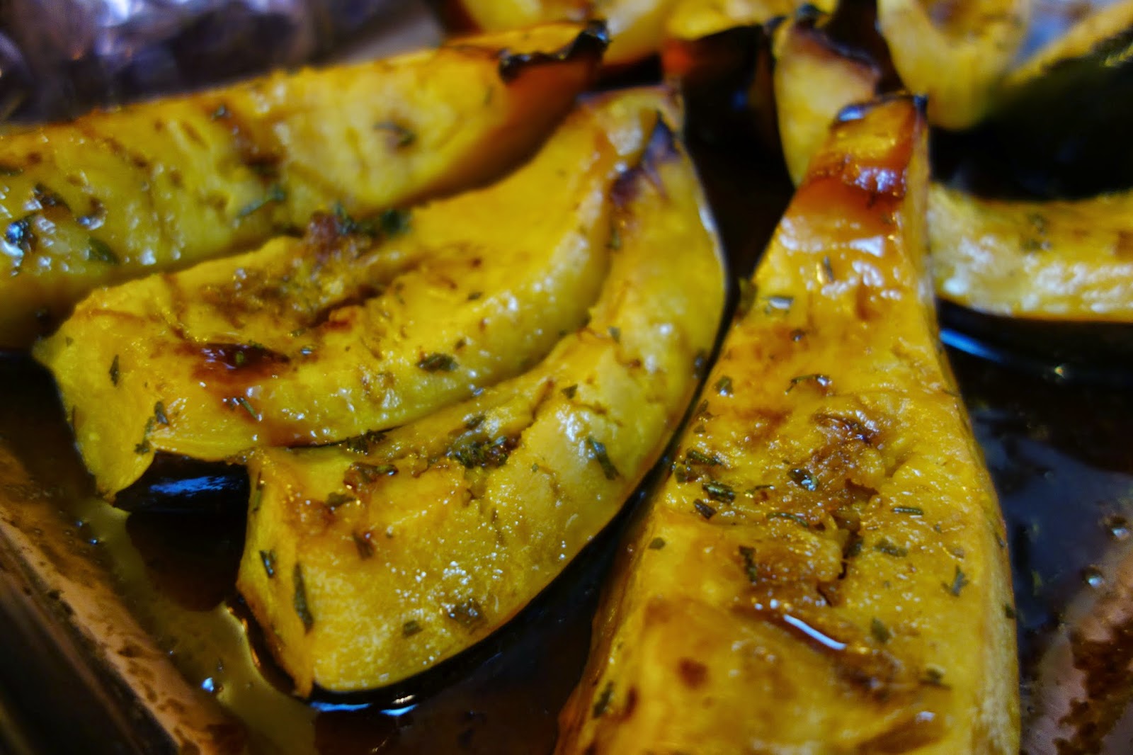 Remove squash from oven and smear the paste mixture all over the squash wedges....Return to the oven for another 20 to 30 minutes, till nicely browned and caramelized